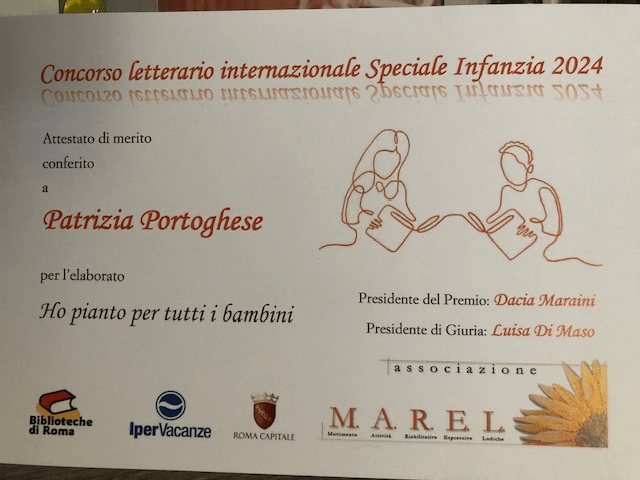 Contentissima di essere tra i finalisti del Premio letterario Speciale Infanzia 2024, con il mio testo ‘Io ho pianto per tutti i bambini’.